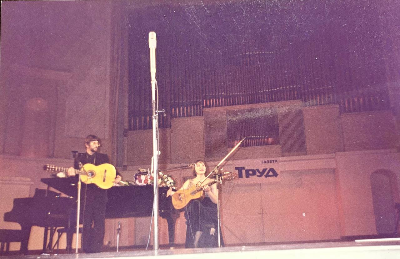 Вот архивная фотография с концерта романсиадцев в Зале Чайковского. Дата из памяти стёрлась, но мы точно знаем, что это было уже после „Романсиады“ (май 1998 года) и до юбилея Александра Сергеевича (6 июня 1999 года).