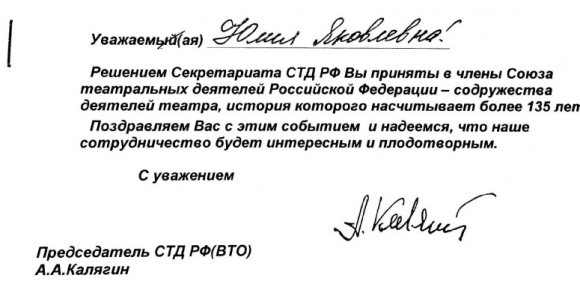 Юлия Зиганшина — член СТД с 2013 года.